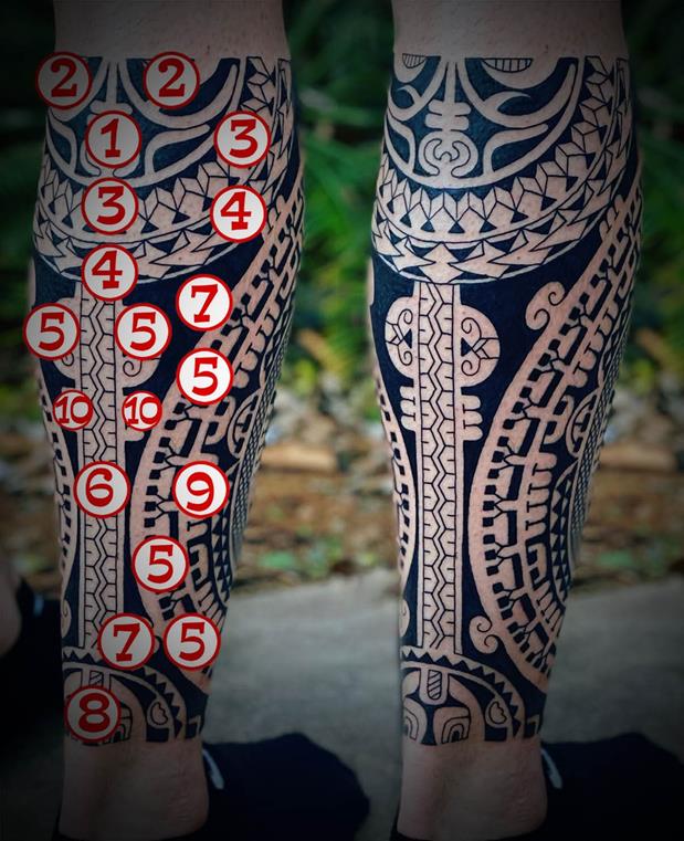 Aqui temos uma tatuagem no estilo Polinésio. Segue abaixo os significados dos símbolos da Tatuagem Marquesan ajustados propriamente para esse