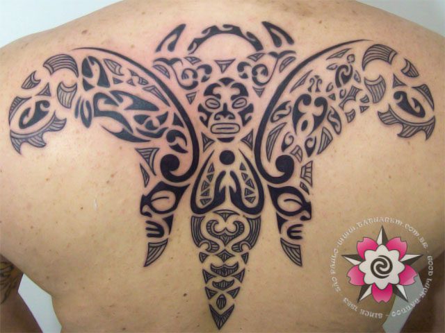 Este desenho de um anjo estilo Maori retoma a forma de uma Arraia para simbolizar proteção e liberdade. Novamente proteção e fertilidade, são representados por dois \”Tikis\” como são chamados na linguagem maori (mascaras ) no interior da parte inferior das barbatanas, e os dois manaias no interior da parte superior são dois anjos guardiões, simbolizando o equilíbrio e a harmonia entre o mar a terra e o céu. Outro elemento importante é a família (as duas tartarugas dentro da direita e da orca na esquerda), em particular, a orca simboliza a vontade de proteger a família com força quando necessário demonstra que esta chamando para si a responsabilidade de cuidar de todos a seu redor. O Hei Matau (Anzol) no final das barbatanas, simbolizam abundância e riqueza. O Koru indica um novo nascimento ou recomeço de uma nova vida, seja espiritual, ou carnal ao longo do caminho que conduz sua própria ilha e a meta a ser alcançada esta na forma das mãos do tiki que parece estar rogando uma prece, mostra sua serenidade em buscar seus objetivos, sempre com consciência no que esta fazendo, é também um sinal de reverencia e agradecimento aos Deuses os ventos espalhados para todos os lados mostra que as dificuldades vindas pela força da natureza sempre serão superadas, o arco em forma de ondas é a constância que as proteções dos anjos devem atuar sobre sua vida, e faz a ponte entre os anjos (manaias) ou seja a união de todas a crenças.