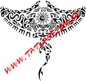 Proteção, liberdade Este desenho de um anjo estilo Maori retoma a forma de uma Arraia para simbolizar proteção e liberdade. Novamente proteção e fertilidade, são