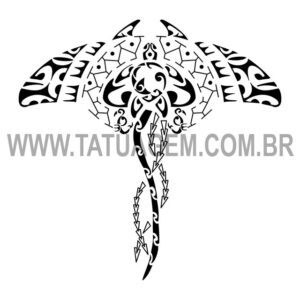 A Arraia em si é um símbolo de proteção no mar, e os tikis nas bordas das asas são os guardiões que protegem de ambos