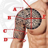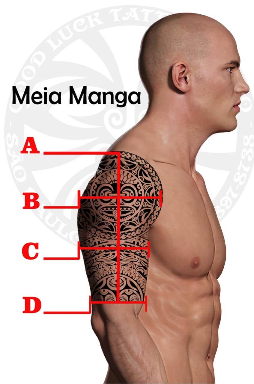 - Para uma tatuagem do ombro ao cotovelo, preciso das dimensões completas do bíceps até o punho.