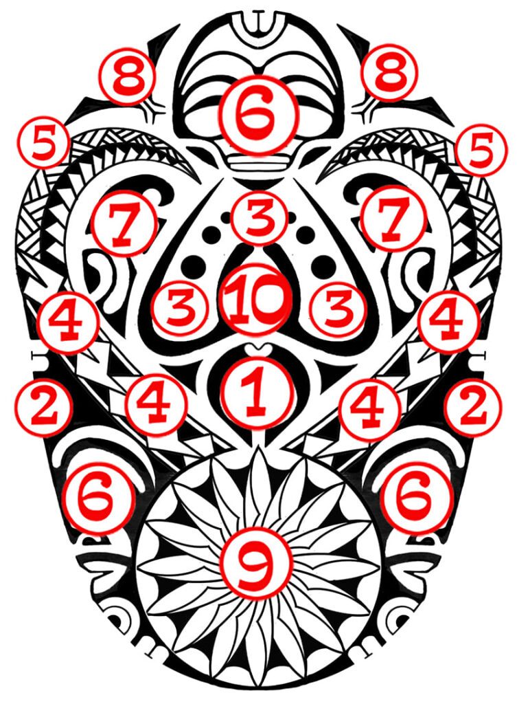 3- Tendo olhos não me enxerguem e nem pensamentos eles possam ter para me fazerem mal. Esse ponto preto é um Olho maori, é um olho de proteção conta maus espíritos, maus olhados e mas situações.