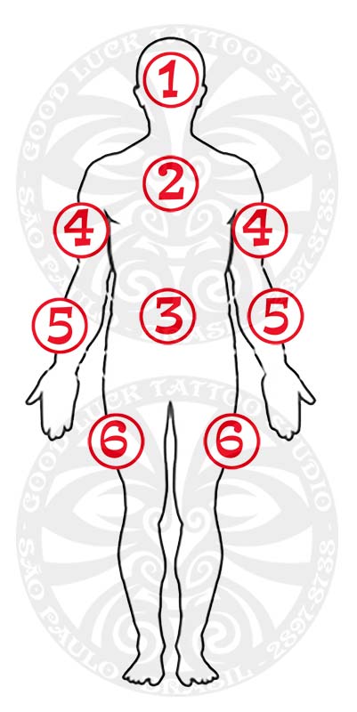 A colocação sobre o corpo desempenha um papel importante na tatuagem Polinésia. Há vários elementos que herdam um significado específico, baseado em sua localização e até mesmo a relação entre elementos, seu posicionamento relativo tem uma influência sobre o significado de uma tatuagem, isso seria impossível de significar em apenas um post, desta forma deixarei apenas como um alerta.